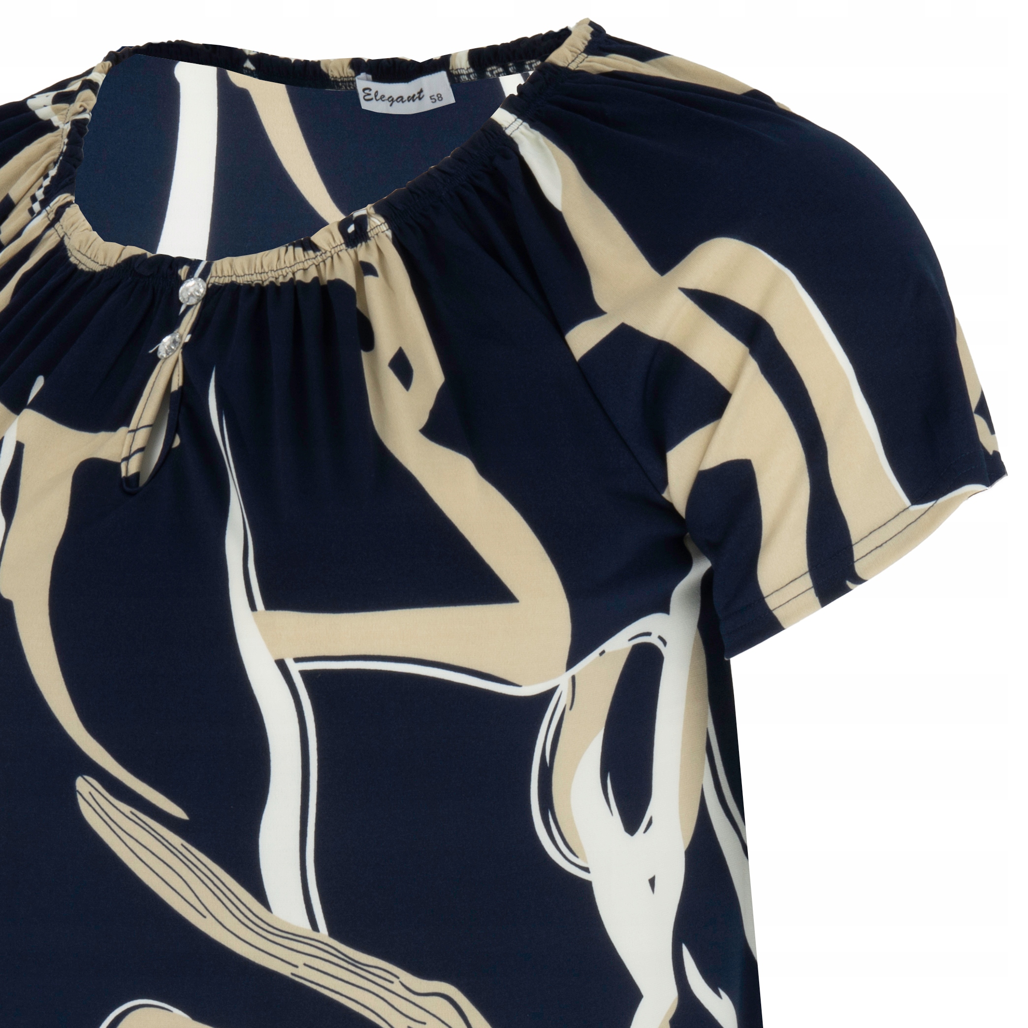 Niżej pod dekoltem dwa ozdobne guziki.