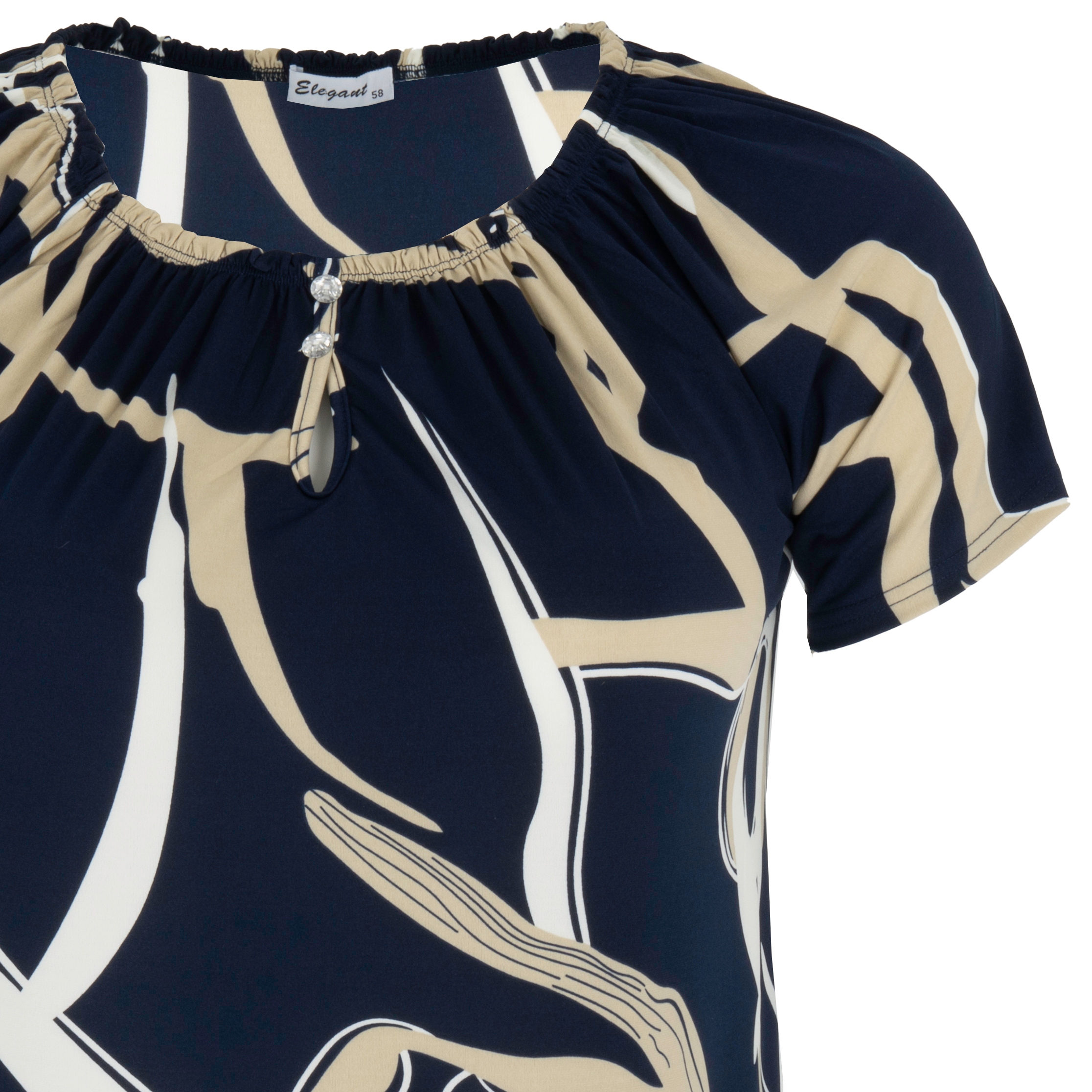 Niżej pod dekoltem dwa ozdobne guziki.