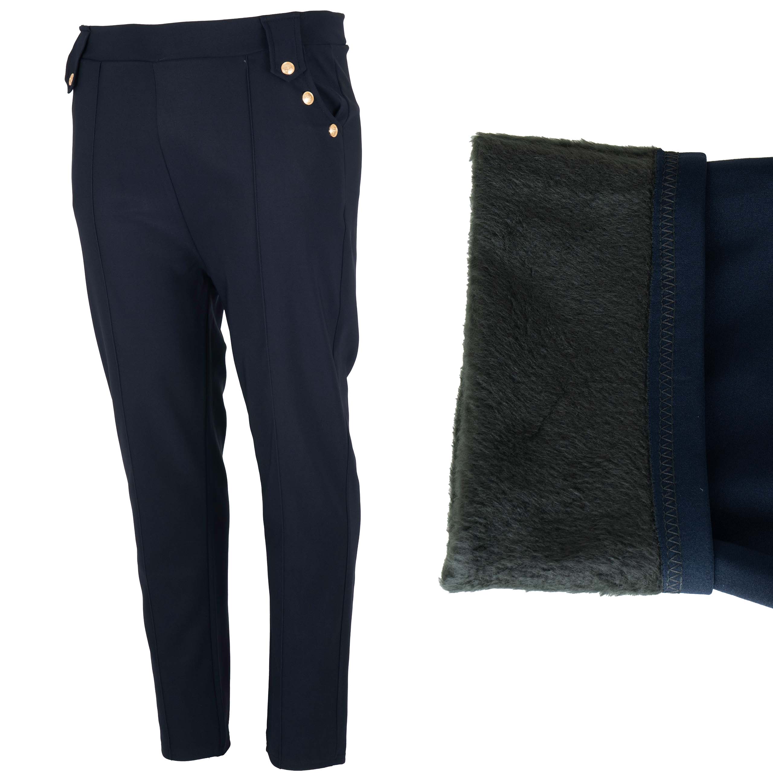 Eleganckie Spodnie damskie elastyczne z guzikami Ocieplane futroEleganckie Spodnie damskie elastyczne z guzikami Ocieplane futro 48 / 50