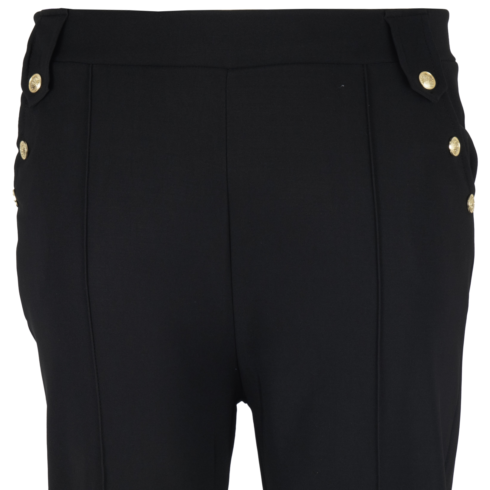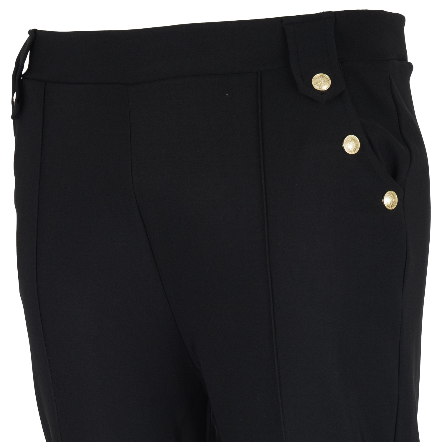 Spodnie damskie z ozdobnymi guzikami i przeszyciem na nogawce.