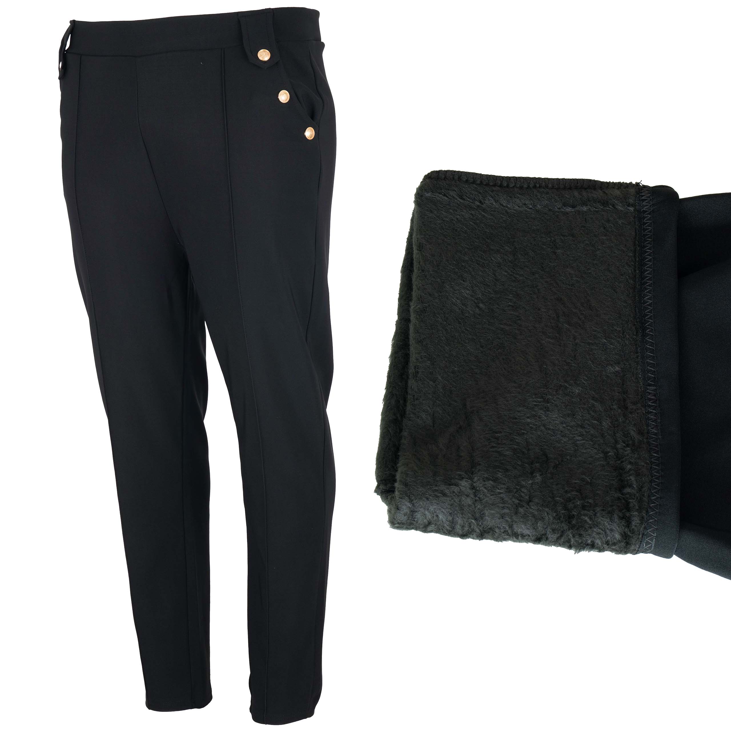 Eleganckie Spodnie damskie elastyczne z guzikami Ocieplane futroEleganckie Spodnie damskie elastyczne z guzikami Ocieplane futro 48 / 50