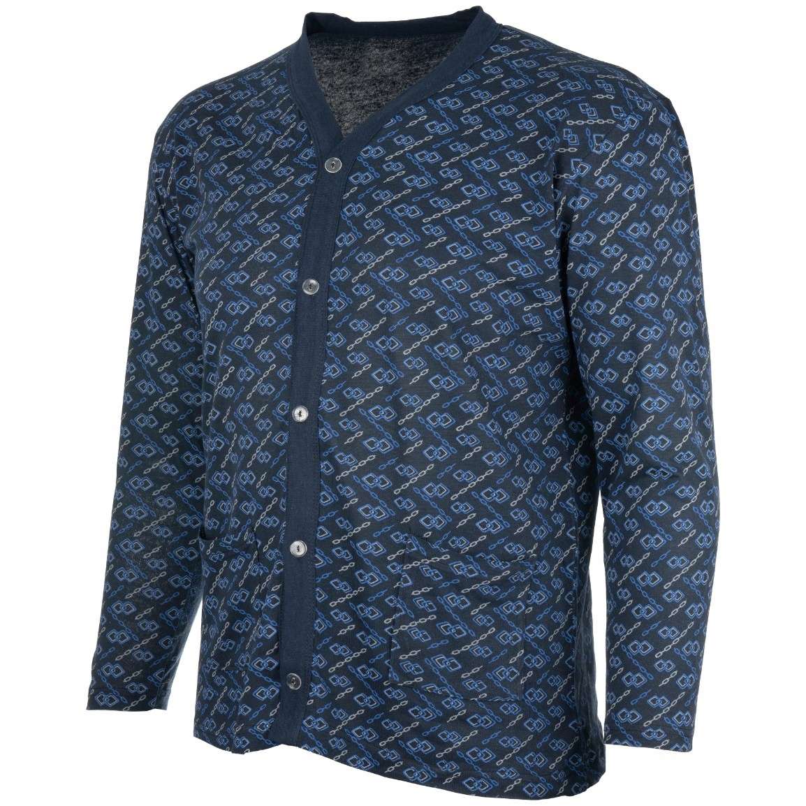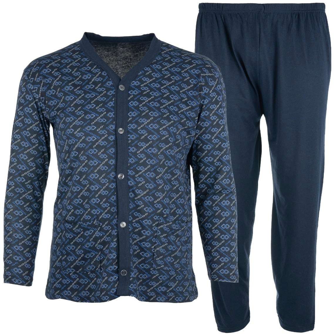 Oferujemy wygodną i stylową męską piżamę w rozmiarze 3XL/4XL, która jest idealna na chłodne wieczory. Stworzone z przyjemnej w dotyku bawełny z dodatkiem poliestru, zapewniających komfort noszenia przez całą noc. Ta rozpinana piżama z długim rękawem i spodniami to świetny wybór dla mężczyzn ceniących sobie luz i swobodę ruchów. Intensywnie niebieski kolor i klasyczny krój bez wzoru sprawiają, że jest uniwersalnym elementem garderoby. Dodatkowe kieszenie są praktycznym akcentem, w które możesz schować drobiazgi. Dzięki guzikiemu z przodu, zakładanie i zdejmowanie piżamy jest bezproblemowe. Nie czekaj, zadbaj o swój komfort nocny z naszą świetną piżamą Jabos!